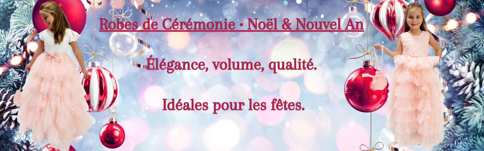 Robes et déguisements dessinés par Linda, pensés pour briller sous les lumières de Noël et garder des souvenirs magiques.