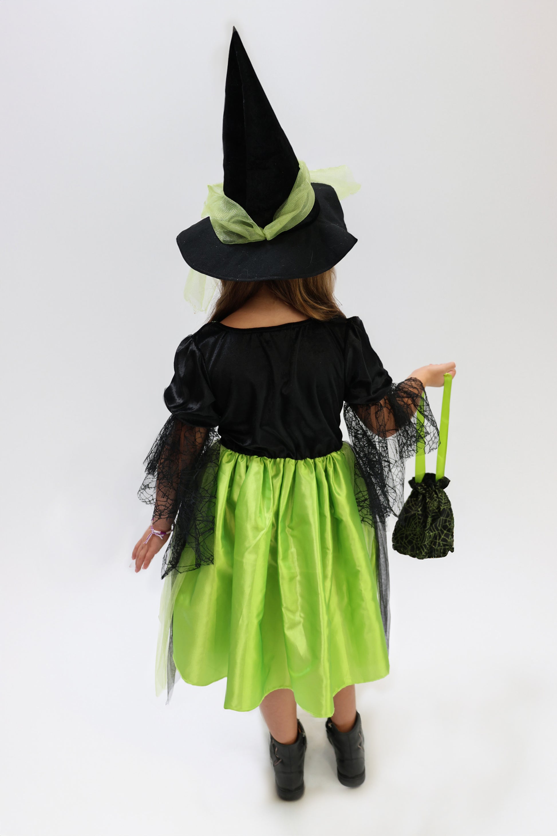 Déguisement d'Halloween : Sorcière Noir et Vert avec Chapeau Enfant